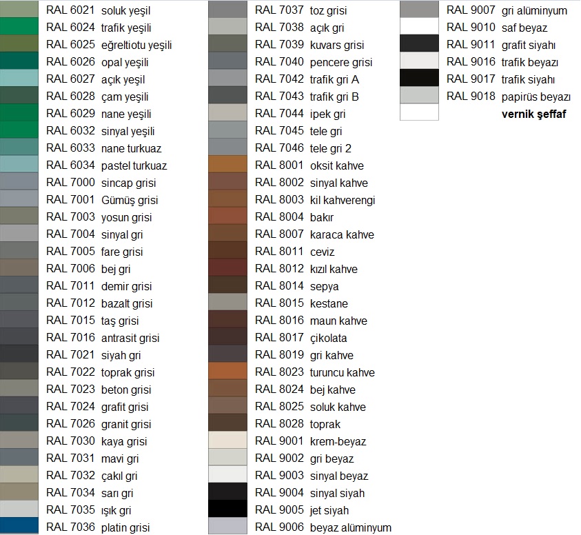 Renk Kartelası :