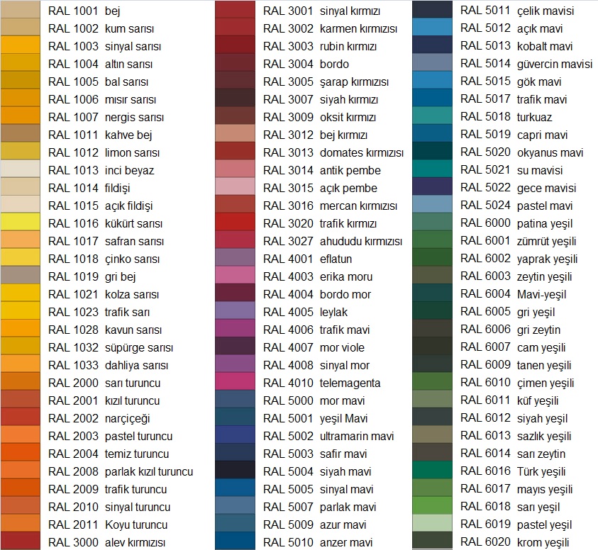 Renk Kartelası :