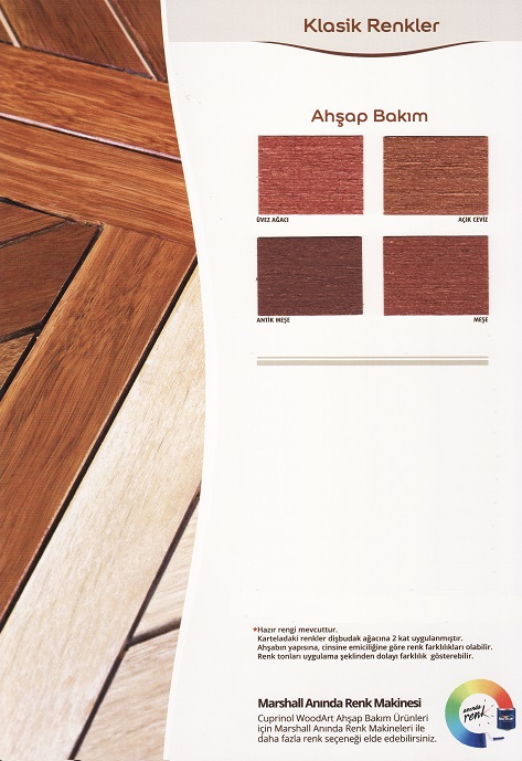 - Tüm ahşap yüzeyler için solvent bazlı transparan ve renkli ahşap koruyucudur.