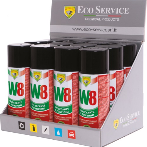 - Eco service w8 multi sprey pas çözme, koruma, yağlama, nem alma, antifriz, yağ çözücü, dielektrik, anti oksidasyon gibi 8 işlev yeteneğine sahiptir.