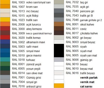 Renkler, fikir vermek amacıyla kullanılmıştır. Digital görsellerden dolayı orjinal boya renklerinden farklılık gösterebilir. Gerçek rengi görebilmek için, kullanılacak yüzey üzerinde denenmesi önerilir.