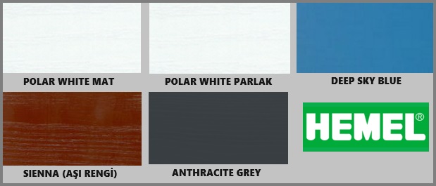 (*) İstek üzerine NCS ve RAL renk kartelaları kullanılarak özel sipariş bazında üretilir.(Mağazamızla iletişime geçin)