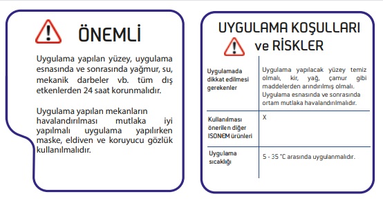• Bir kat uygulama yapılmalı ve 24 saat beklendikten sonra ikinci kat uygulanmalıdır.