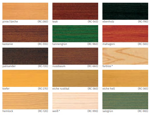 * işaretli renk tonları düşük UV dayanımından dolayı doğrudan güneş ışınlarına maruz ahşaplarda kullanılmamalıdır.