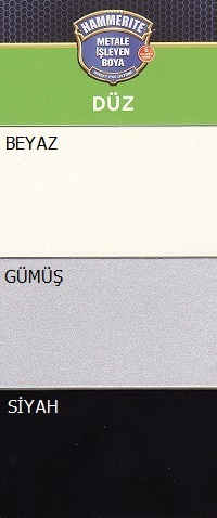 - Çıplak çinko, Aluminyum ve galvanize yüzeyler üzerine; Hammerite Metal Boya uygulamadan önce Hammerite Özel Metaller Primeri uygulayın.
