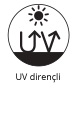 - Güneş ışınlarına (UV) dirençli